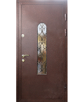 Металлическая дверь порошковое напыление с 2-х сторон со стеклом и ковка. СП-2280
